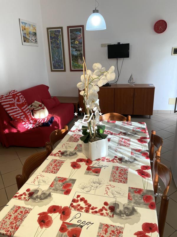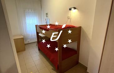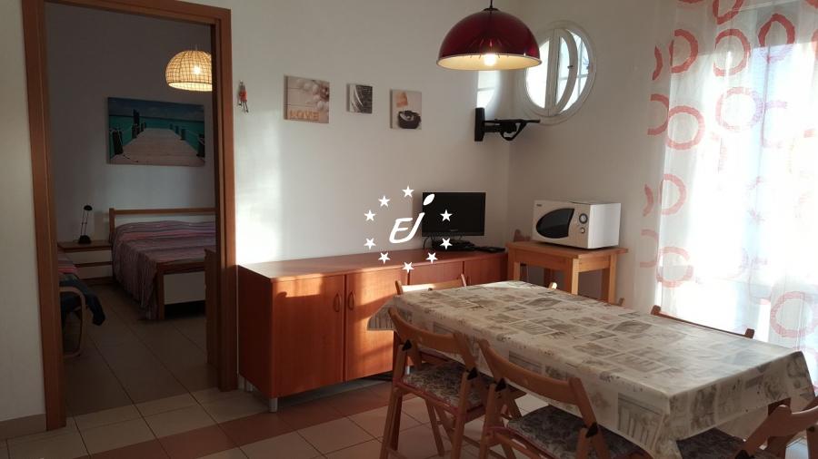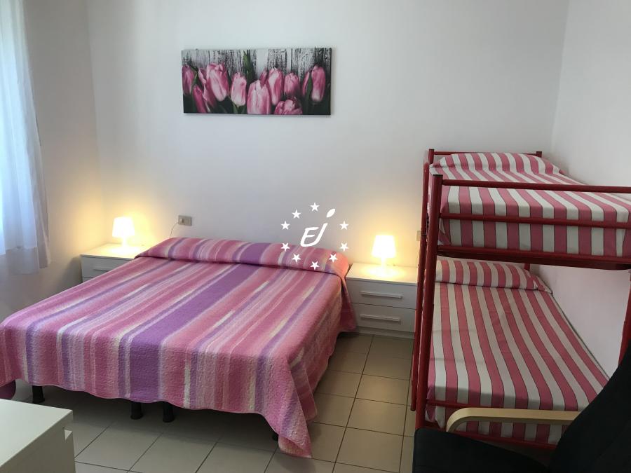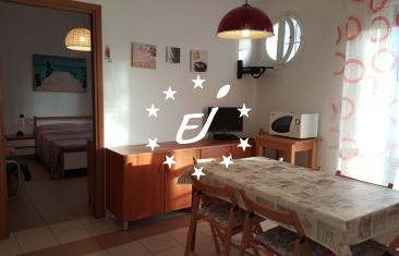 Gli appartamenti al piano terra sono composti da soggiorno-cottura con divano letto, camera matrimoniale + letto singolo, cameretta con letto a castello e bagno finestrato con box doccia e servizi.